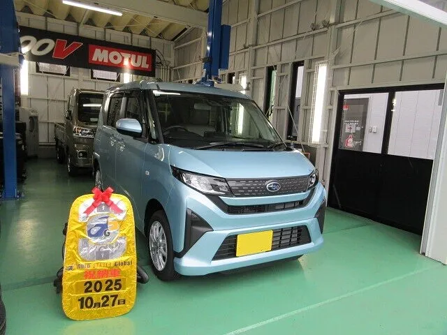 本日のご納車はスバル ステラです。爽やかなスカイブルーメタリックがドライブ前から気分を上げてくれますね。新型ステラは乗り降りや荷物の積み下ろしが楽なリヤスライドドアになり、実用性と利便性が高くなりますね。メンテナンスを含め今後ともよろしくお願いいたします。(2025/10/27)