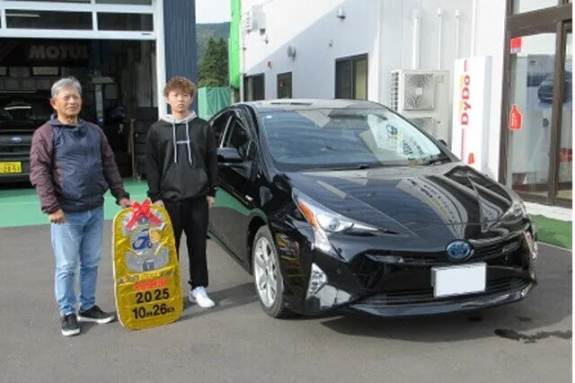 本日のご納車はトヨタ プリウスです。超低燃費性能はもちろん、安定感のある走りと乗り心地で通勤から休日のドライブまで存分に楽しめそうですね。またスポーティな雰囲気もドライブを盛り上げてくれそうですね。りメンテナンスを含め今後ともよろしくお願いいたします。(2025/10/26)