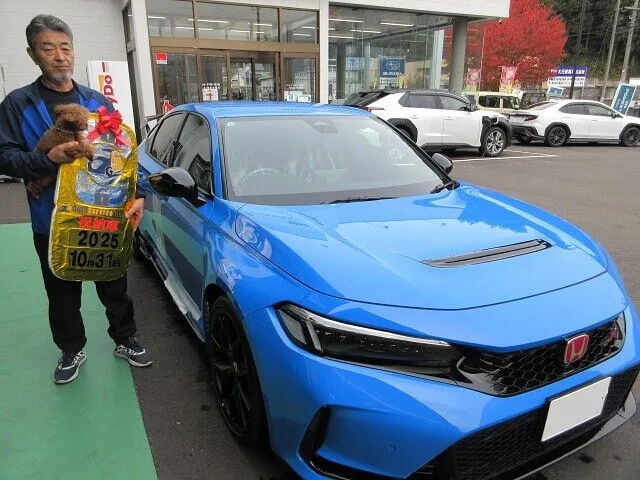 本日のご納車はホンダ シビックタイプRです。納車まで大変お待たせいたしました。走行性能やハンドリング、エンジンと全てにおいて運転する喜びを感じられるお車ですね。よりスポーティで鮮烈な印象のレーシングブルーパールがお車の印象をさらに高めてくれてますね。メンテナンスを含め今後ともよろしくお願いいたします。(2025/10/30)