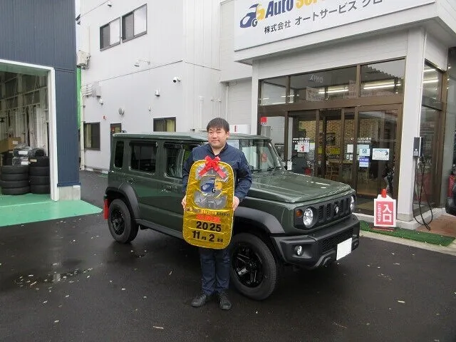 本日のご納車はスズキ ジムニーノマドです。納車まで大変お待たせいたしました。ジムニーシリーズ初の5ドアモデルのお車です。ジムニーからのお乗り換えですので、ジムニーのような本格的なオフロード性能とリヤドアがあることによる実用性と快適性の両方を楽しみながらドライブを楽しめそうですね。メンテナンスを含め今後ともよろしくお願いいたします。