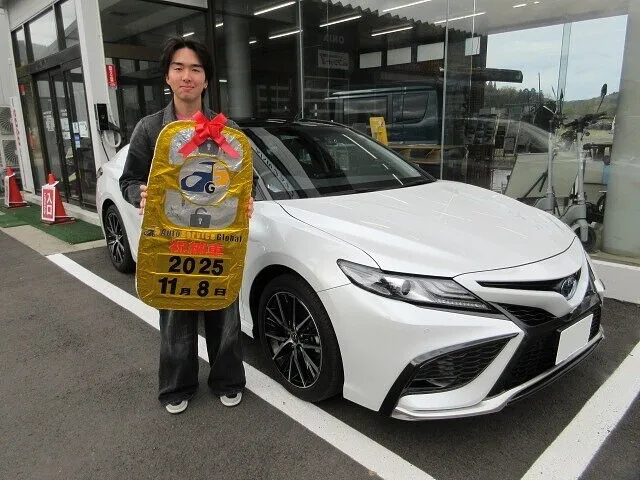 本日のご納車はトヨタ カムリハイブリッドです。遠方からのご利用ありがとうございます!洗練されたスポーティで低重心なデザインが特徴的なお車です。低重心で安定した走行性能とハイブリッドならではの静粛性と上質な乗り心地を楽しめるお車ですね。メンテナンスを含め今後ともよろしくお願いいたします。(2025/11/8)