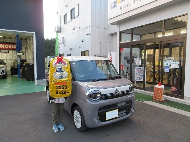 本日のご納車はスズキ ワゴンRスマイルです。丸目のヘッドライトと優しい雰囲気のデザインがとてもかわいいお車です。人気のくすみカラーが上品さと落ち着きを感じさせてくれますね。室内はゆとりのあるスペースで快適なドライブを楽しめそうですね。メンテナンスを含め今後ともよろしくお願いいたします。(2025/9/28)
